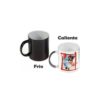 Por el exterior parecen ser tazas normales de color, pero al añadirles líquido caliente o al calentarlas al microondas desaparece el color y aparece la imagen. Podrás crear unas unas tazas únicas y personales con imágenes o mensajes originales. Ideal para sorprender a cualquier persona.